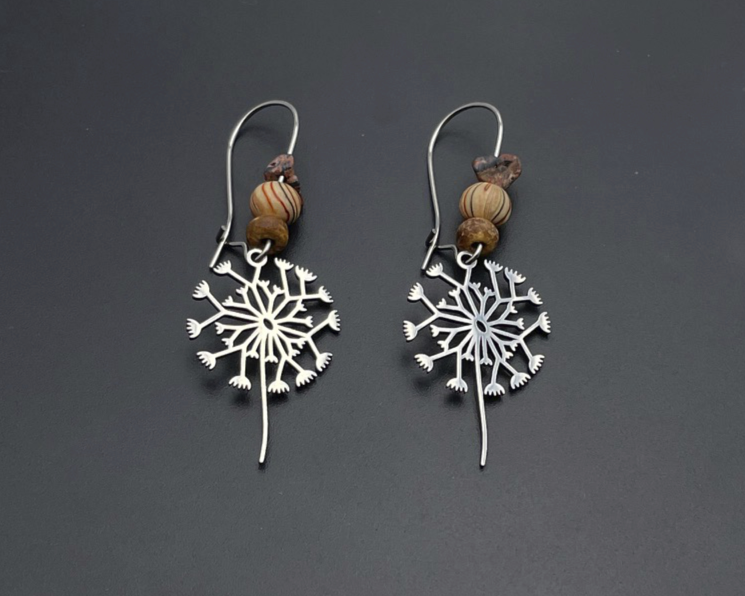 Ohrringe, Ohrhänger Pusteblume mit Edelsteinen und Kokosperlen